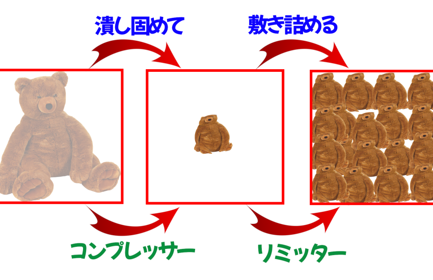 音楽エフェクト機材のコンプレッサーとリミッターについて、使い方や設定の方法で今まで気持ちや作業が定まらなかったけど、ふとした気付きで簡単な考え方を思いついたのでメモ程度に書いてみることにします コンプレッサーとリミッター