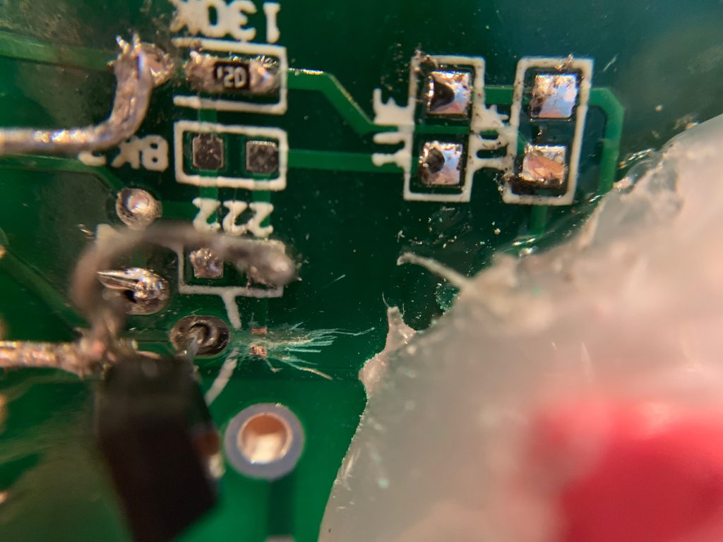 銅は柔らかいと思ってもされど金属!特に基盤という樹脂の上に乗ってて、力を入れすぎると基盤壊れちゃうし、力入れないと切れないし…初めは削るようにカッターを使ったんですよ
