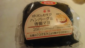 サンクスの新発売おにぎり ばくだんおむすびハンバーグ&唐揚マヨ …なんとも長いネーミングだこと(;´∀`) 昔からサンクスの味ってちょっとバカっぽい味がして、調理責任者とかの味覚を疑っていた時もありましたが 最近はそこま