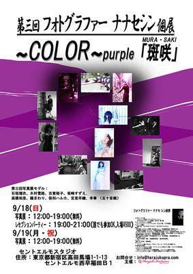 1クール毎に開催している写真展 フォトグラファー ナナセシン個展 COLOR -purple- 『斑咲(MURA・SAKI)』 -主催:原宿プロダクション– 今回もスタッフとして関わらせて頂いております (*